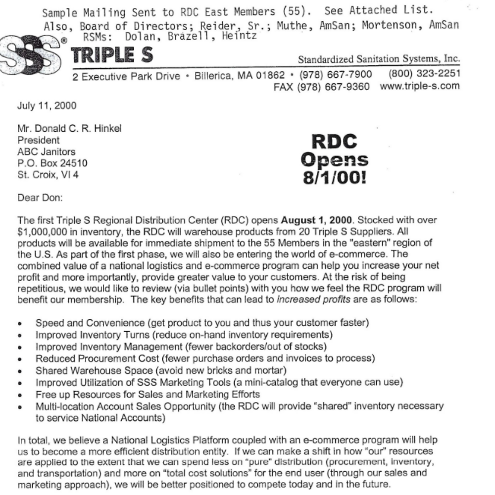 In the face of mounting competition from national jan/san distributors, a group of independent business owners began discussions around a revolutionary idea: forming a cooperative. Their vision was simple yet powerful. By combining purchasing power and sharing marketing insights, they aimed to level the playing field. This collaborative spirit laid the foundation for what would become Triple S, built on the belief that independent distributors could thrive through unity.